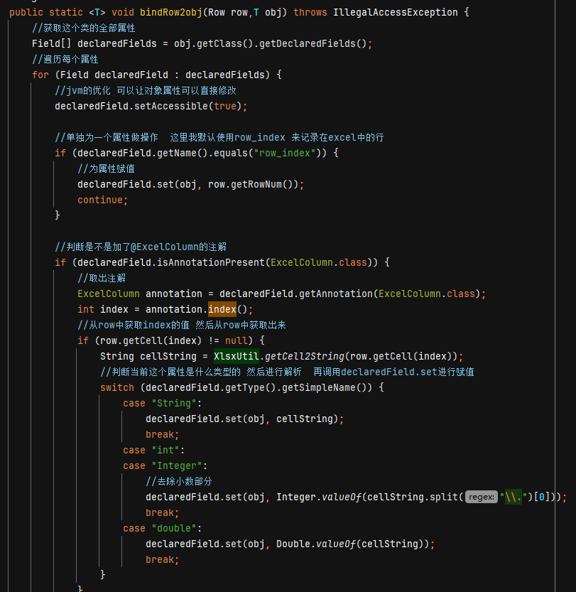 public static <T> void bindRow2obj(Row row,T obj) throws IllegalAccessException {